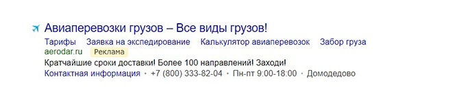 2. Сайт вошел в ТОП-10 по следующим запросам: авиаперевозки; авиадоставка из Москвы; авиаперевозки грузов из Москвы; авиа экспресс доставка; и пр.